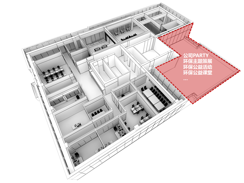 设计面积:1700㎡解决问题:在空间中“可见即所得”的环保品牌持续输出问题关键词:环保品牌文化输出、运营功能满足、共享空间、环保陈设设计。