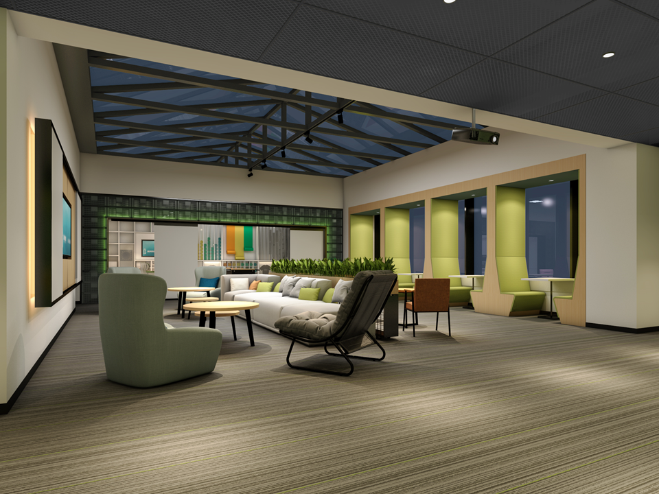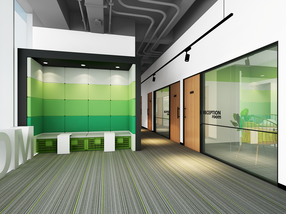 3、装饰风格及色彩体系:根据展陈大纲内容、品牌VI系统引导装饰,中间色与企业主色、辅助色相结合。
